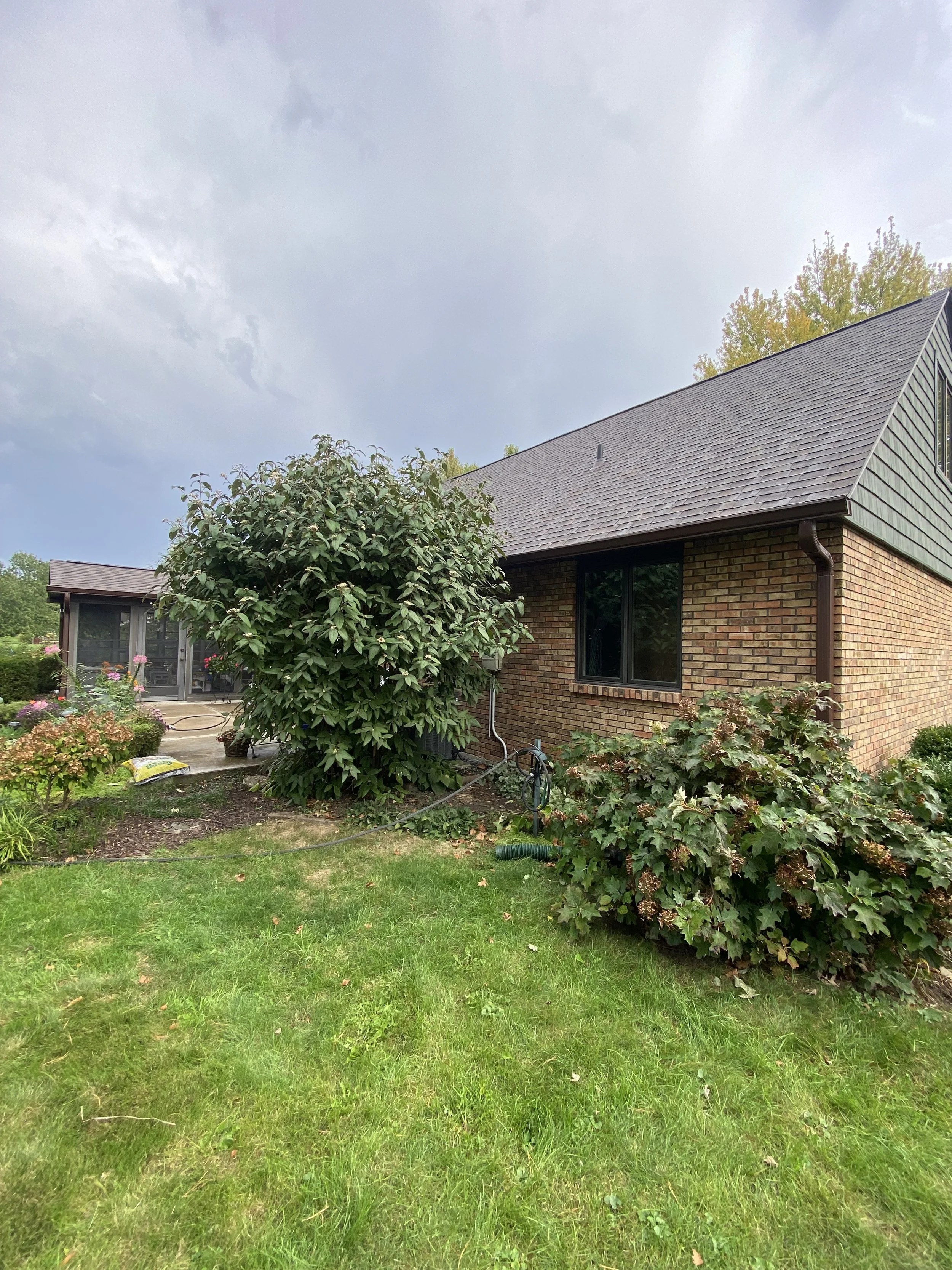 Brown updated 6-inch seamless gutter system with 3x4 downspouts and elbows!🟤