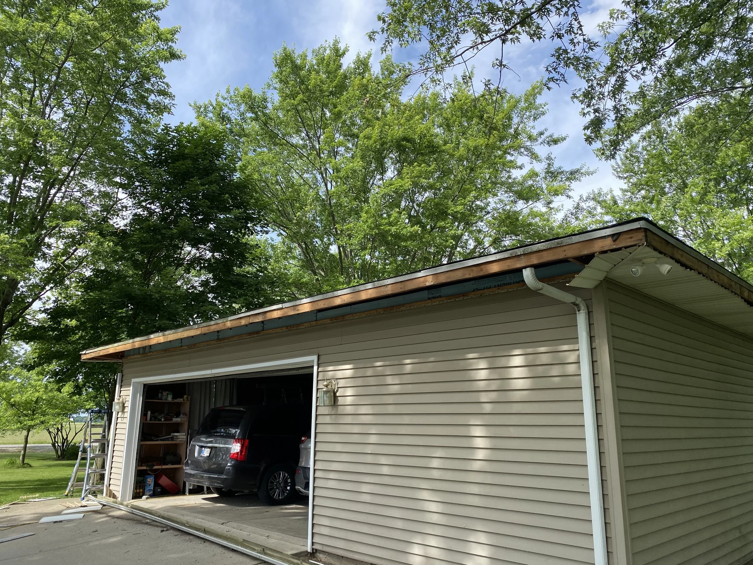 Before-AfterNew Vinyl soffit, fascia boards, fascia wrap, 5-inch seamless gutters and gutter protection on this beautiful ranch property!